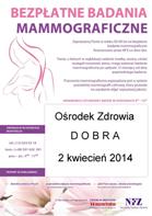 W imieniu Centrum Medycznego Maszachaba zapraszamy w godz.: 9.00 -16.00 Panie w wieku 50-69 lat (ur.1964-1945)na bezpłatne badania dostępne co 24 miesiące.2 kwiecień 2014 Ośrodek Zdrowia DOBRAObowiązuje rejestracja z nr PESEL tel.: 12 633-02-18 lub 501-620-281Mammografia… warto o niej pamiętać!Ulotka do pobrania - Kliknij!!!...
