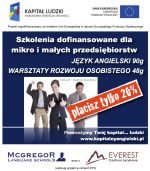 Szkoła językowa MCGREGOR LANGUAGE SCHOOLS wraz z EVEREST realizując projekt Pomnożymy Twój kapitał... ludzki, oferują dofinansowane szkolenia z języka angielskiego oraz warsztaty rozwoju osobistego dla mikro i małych przedsiebiorstw.Projekt współfinansowany ze środków Unii Europejskiej w ramach Europejkiego Funduszu Społecznego Szcze...